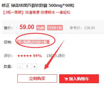 现紫一商城强力推出活动:此款修正芦荟软胶囊买2瓶送1瓶,3瓶(一周期)仅需118元,可以服用3个月。活动限时3天,过期恢复原价!赶紧抢购吧!(点击进入抢购)